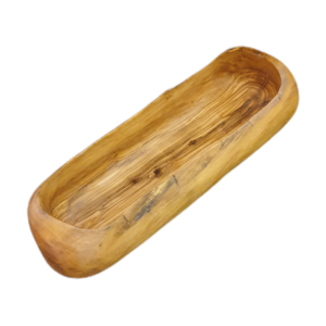 This rustic olive wood baguette or garlic bread serving dish is perfect for serving a baguette whole or sliced, making a beautiful addition to your table.